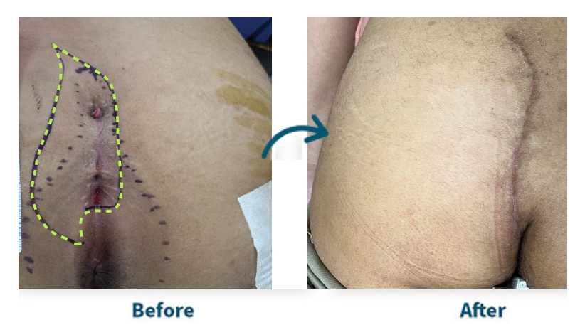 The following are photographs of 12 PTCNJ cleft-lifts. In each before image, the tissue to be removed lies within the green dashed line. Each after image represents full healing at 3-10 weeks.